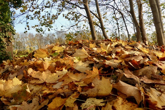 Morgens: Same procedure as every Tuesday. die Laubhaufen werden kleiner oder bilde ich mir das ein? Eichenlaub bleibt ja hängen bis die neuen Knospen kommen.