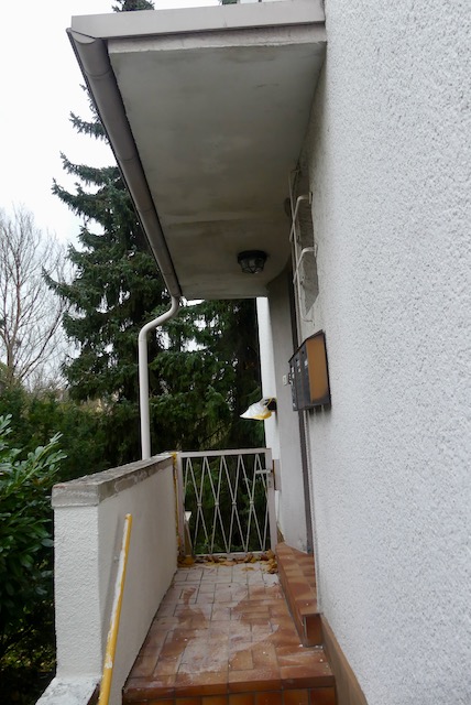 Morgens: Sonnenaufgang 8.16 ich trete aus der Tür um dem Rhododendron seinen Kaffeesatz zu bringen, da stehen die Handwerker davor. Hab ich mich erschreckt. Baustelle geht weiter.