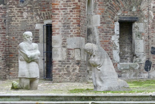 Das Mahnmal: Die trauernden Eltern ist im Original von Käthe Kollwitz und steht in Flandern. Die beiden Figuren hier sind leicht vergrößerte Kopien, die von Joseph Beuys und Erwin Heerich gefertigt wurden.