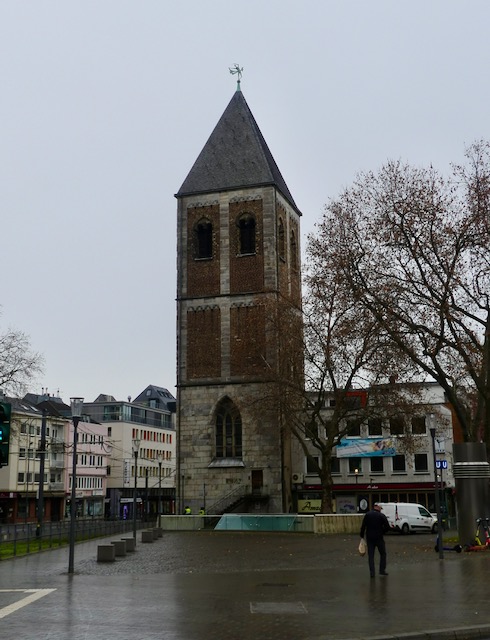 An der Haltestelle Heumarkt steht der romanische Kirchturm von Klein St. Martin.