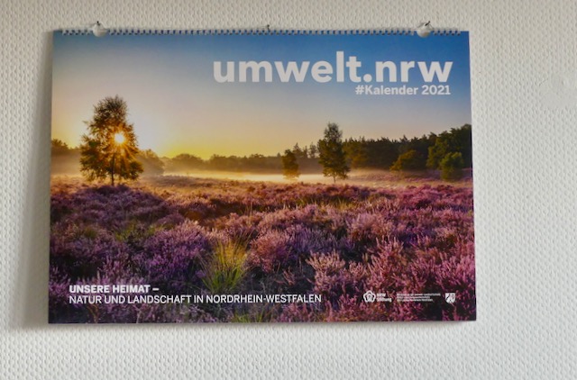 Nachmittags klart es tatsächlich auf und gerade, als ich einen Fuß vor die Tür setze, kommt ein schöner Großer Kalender von der NRW-Stiftung an. Den musste ich erstmal aufhängen. Der braucht aber nicht einen Nagel, wie alle seine Vorgänger, sondern zwei und natürlich hängt er hinterher schief.
