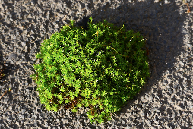 Ja, dieses hier auf dem Dach, aber nicht auf dem Geh/Radweg. Ich glaube auch nicht, dass dieses Moospolster auf der ungepflegten, verdichteten zu kleinen Baumscheibe überlebt, aber es kann noch ein bisschen Wasser für den Baum speichern.