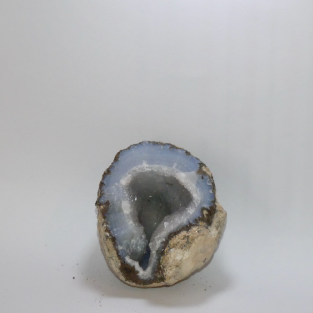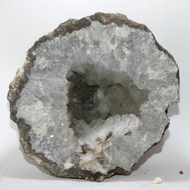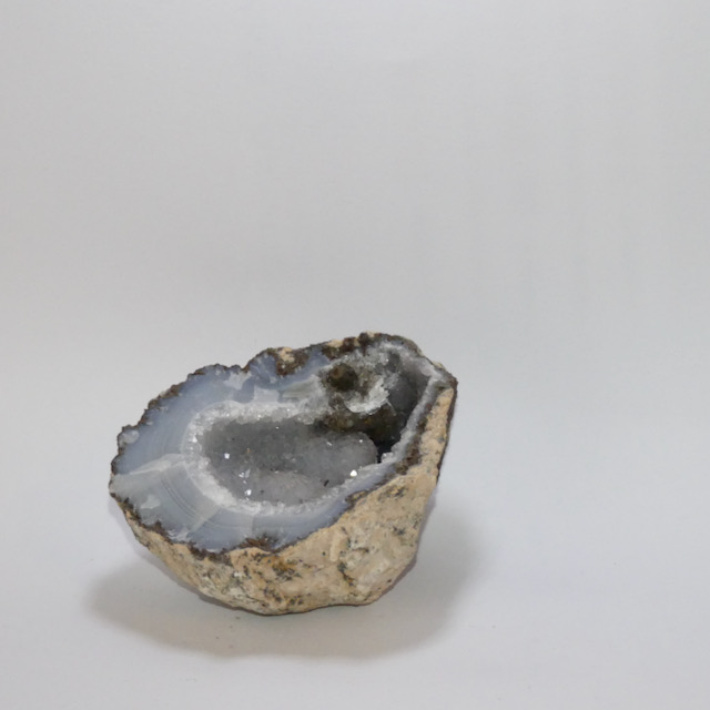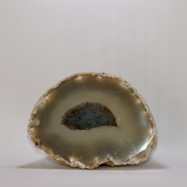 Kann man so kaufen, außen geschnitten, geschliffen und poliert, innen ist noch ein Hohlraum mit kleiner Hohlraum mit Kristallen und in diesem Fall schwarzen Einschlüssen. Von der hier weiß ich nicht einmal mehr woher ich sie habe. Mit hoher Wahrscheinlichkeit von einer Mineralienmesse in Hamburg, kann aber auch ein Geschenk gewesen sein.