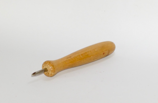 Das Dings mit dem Dorn wurde aus dem Haushalt meiner Oma in meine erste Wohnung importiert. Als Dünner Hering habe ich es ab und zu genutzt um zusätzliche Löcher in Gürtel zu bohren, obwohl dafür eine Lochzange geeigneter wäre. Es hat meine sämtlichen Umzüge mitgemacht, ohne ausgemustert zu werden. Mal in der Besteckschublade, mal im Nähkästchen, mal im Werkzeugkasten, in Kramschubladen und dann hat es eine steile Karriere in der Brauchbarkeitsskala hingelegt und sich einen festen Platz erworben in der Bookcrossing-Kiste. Es eignet sich nämlich hervorragend dazu Luftpolsterumschläge weiter zu verwenden, wenn die Löcher für die Klemmen zerfleddert sind. Das Dings kann nämlich kleine runde Löcher bohren. Seine ursprüngliche Bestimmung aber wurde mir erst neulich klar, als mal wieder ein Schraubdeckel nicht vom Glas zu lösen war.