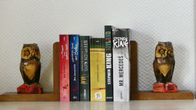 Die habe ich schon sehr lange. Sie standen schon in meinem Kinderzimmer auf der 70er Jahre Umbauliege. Ich habe sie irgendwann mal geschenkt bekommen, als die Bücherregale nicht mehr ausreichten. Und auch diese Eulen haben etliche Umzüge überlebt.