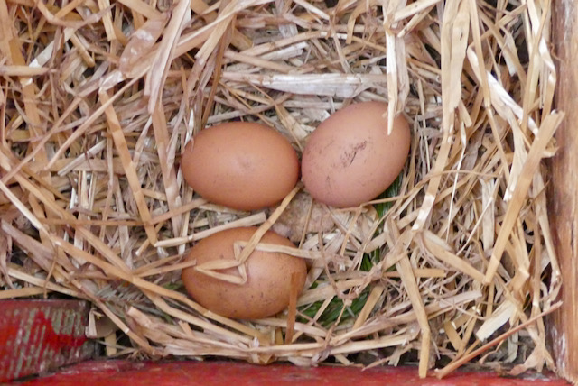 Meine Vorräte gehen wegen Ostern und Schneesturm langsam zur Neige, vor allem Kaffee und Kartoffeln. Dafür habe ich jetzt Eier.