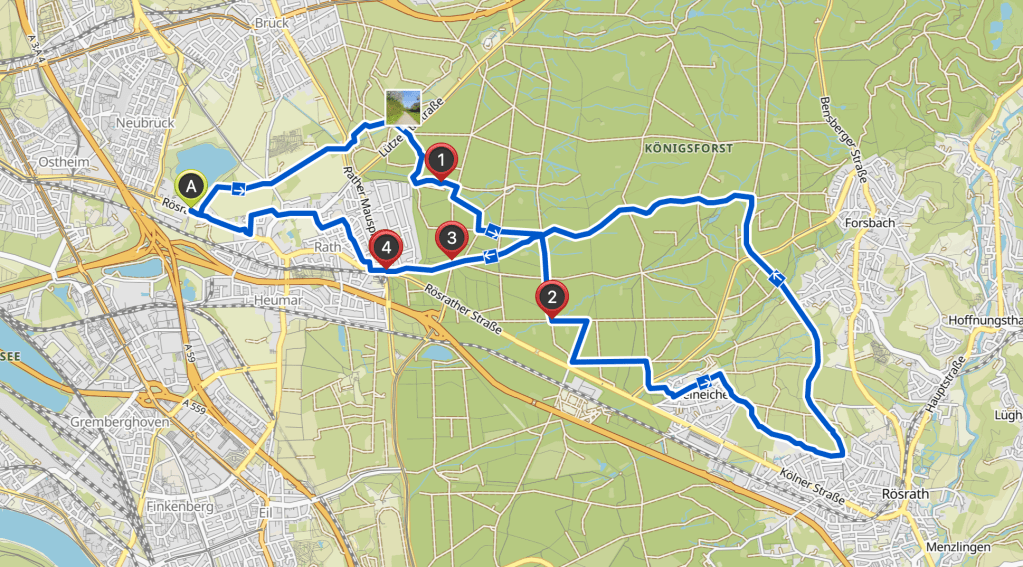 Und wie immer: keine Tour ohne das Navi einmal zum motzen zu bringen. Ich biege nicht links ab, wie befohlen, sondern nehme erst die nächste Ausfahrt vom Bahndamm Richtung Rath.