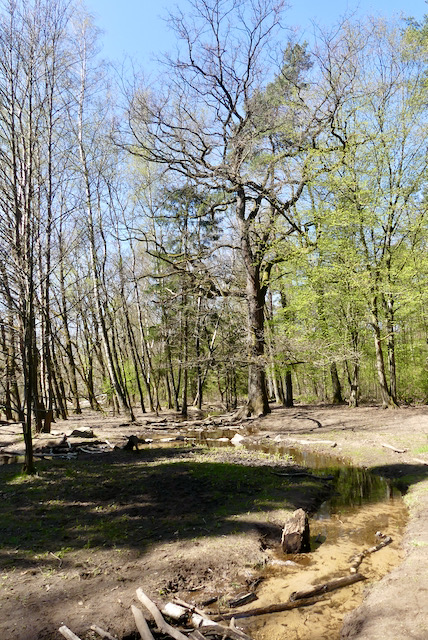 Das steht jetzt am Sandfang, aber ich habe unterwegs noch einige andere dieser Schilder gesehen, Die vor Astbruch warnen. Der Königsforst, oder zumindest Teile davon, werden ihrer natürlichen Entwicklung überlassen. Das bedeutet auch, dass Tote und abgestorbene Bäume nicht mehr gefällt werden und Totholz im Wald bleibt. Der kleine Waldgeist ist Zeuge der Entwicklung.