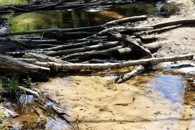 Überraschung an der Furt durch den Giesbach: Der morsche Thron ist gestürzt.