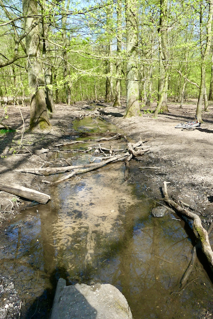 Man sieht dem Wald hier seine militärische Vergangenheit noch an. Es gibt Gräben, Löcher, Wälle und herumliegende Betonbrocken.