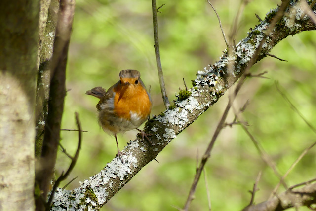 Rotkehlchen sangen überall, aber nur eins ließ sich zu einem kurzen Fotoshooting herab.