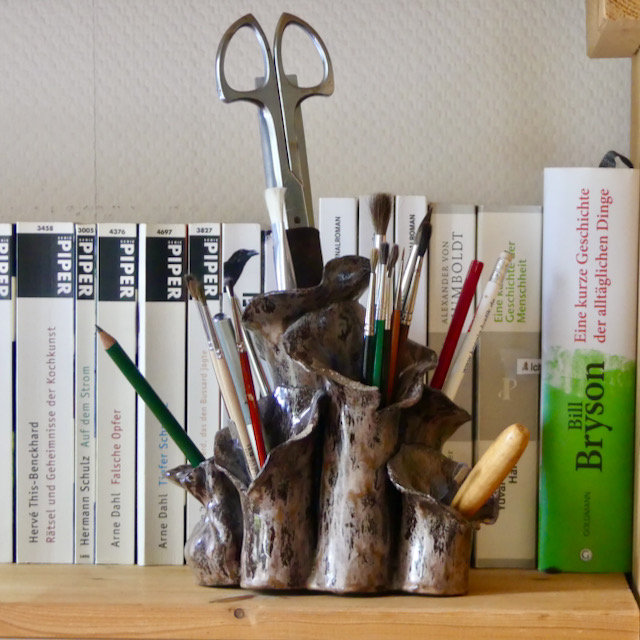 Bei mir steht es im Regal und hält hauptsächlich Pinsel und Bleistifte.
