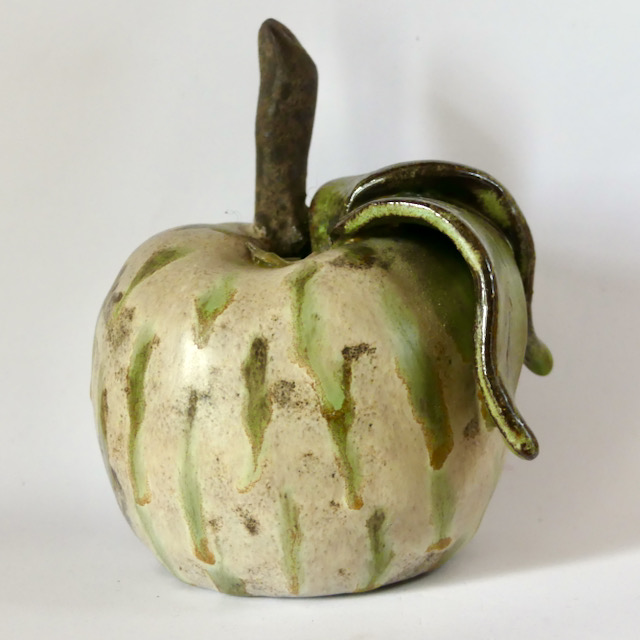 Meine Tante hat in ihrer kreativen Phase getöpfert. Ein apfelförmiger Kerzenhalter landete bei mir, dieses Ding bei meiner Mutter um das zu halten, wozu es eigentlich gedacht war. Es stand dort im Bad als Krimskramshalter für Nagelfeile, Lippenstift und Co.