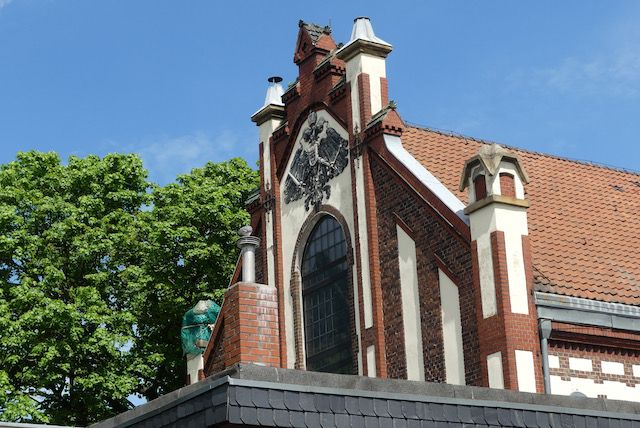 Eigentlich wollte ich dem Gewucher etwas Einhalt gebieten und hatte auch schon angefangen, das Kraut vom Weg zum Haus zu entfernen, da war im Stadtanzeiger der Standort eines öffentlichen Bücherschranks in Ostheim vermerkt, den ich noch nicht kannte. Also bin ich da mal hingegangen, zu Fuß. Seit die Knie wieder mitspielen, gehe ich öfter mal zu Fuß, anstatt das Rad zu nehmen.