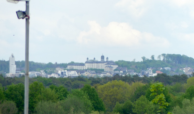 Neuerdings kann man bei klarem Wetter von der Rösrather Straße wieder auf Bensberg blicken. Wahrscheinlich, weil am Baggerloch so viele Bäume fallen mussten. Nein, das ist nicht alles Wald, das ist die perspektivische Verdichtung durch das Teleobjektiv.