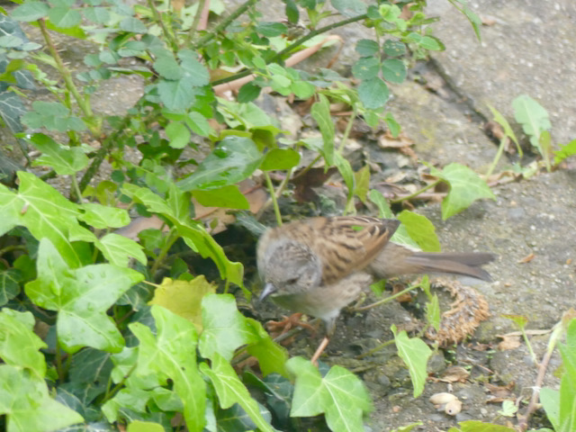 Dort beobachte ich recht lange eine nasse Heckenbraunelle die unter nassen Pflanzen nach nassen Insekten sucht.