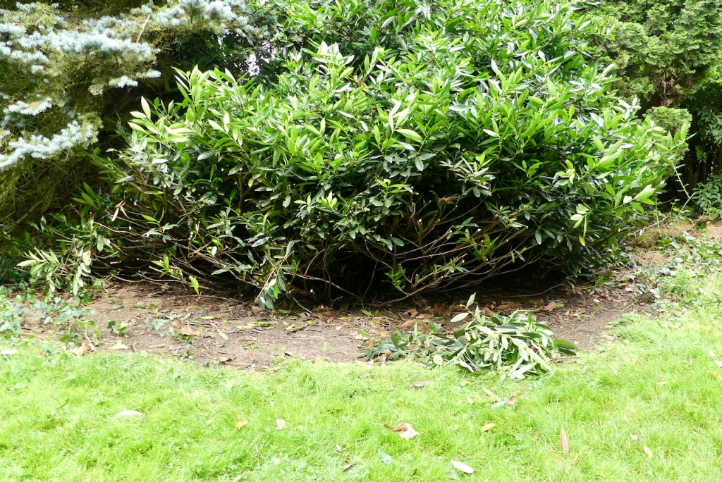 Und das war nur einer. Ein winziges Stück von einem genau genommen. Denn er ist um die Blautanne herum gewuchert und auf der anderen Seite fast genauso groß. Der einzige Vorteil von Kirschlorbeer beim Schnitt: Er hat keine Stacheln.