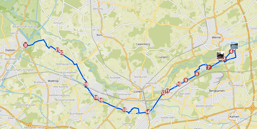 Mein Fehler: vor Datteln treffen sich gleich mehrere Kanäle. Einfach geradeaus fahren war also nicht möglich.