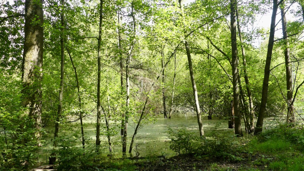 Dann geht es erstmal wieder in den schattigen, matschigen, moorigen Teil, der ordentlich unter Wasser steht.