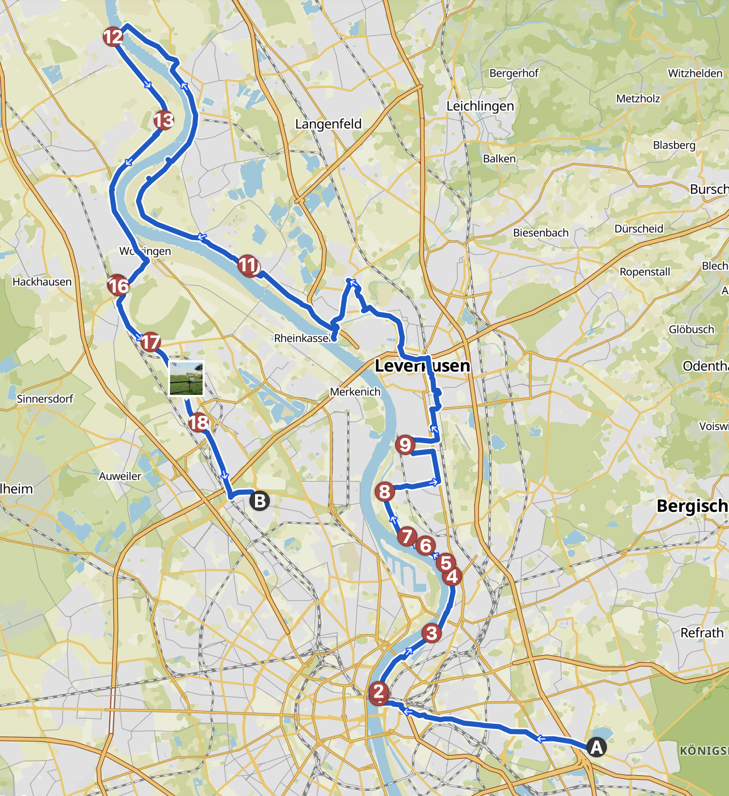 Diese hier hätte ich auch zu Ende fahren können, wenn ich auf der Rheinstrecke geblieben wäre. Ich war alles andere als fertig, als ich auf die Bahn gesprungen bin. Im Dunkeln quer durch Köln hatte ich aber keine Lust zu fahren.