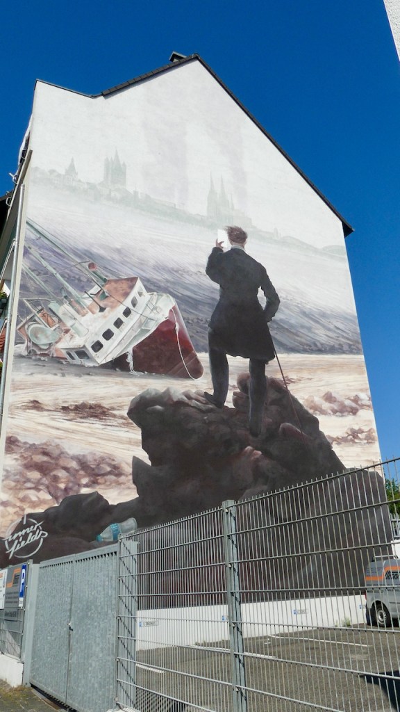 Kunst gibt es hinter der Haltestelle Trimbornstraße. Ich liebe diesen großformatigen „Caspar David Friedrich.“
