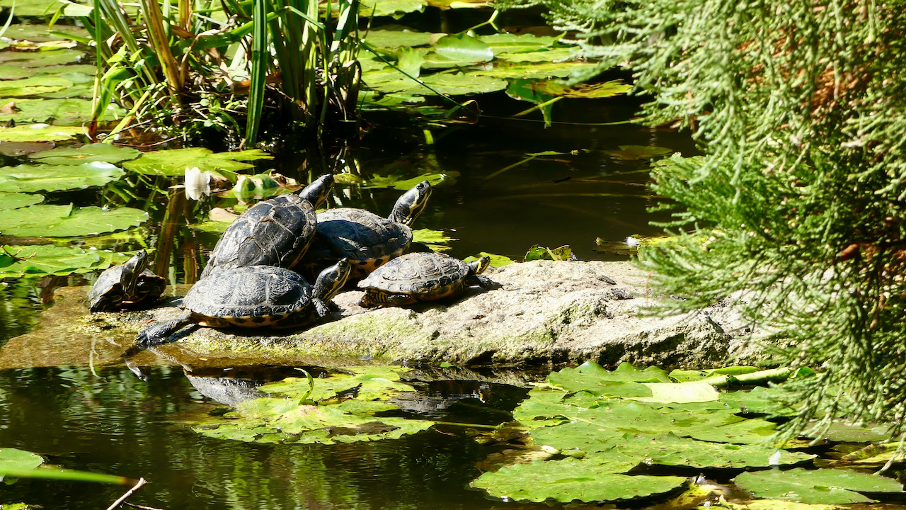Und schon bin ich auf der heute sehr belebten Rheinstrecke. Die bin ich ja schon oft gefahren. Schneller als erwartet, komme ich in Leverkusen an und drehe eine Runde durch den Carl-Duisberg-Park, den japanischen Garten und an den angrenzenden Chemie-Palästen vorbei.