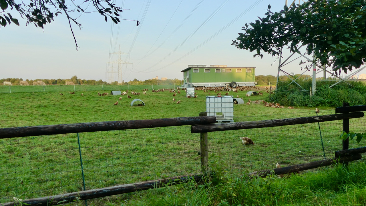 Ich weiß nicht, ob es an dem Hühnermobil liegt, oder daran, dass die Straße für Autos gesperrt ist, jedenfalls vertreiben sich an diesem Streckenabschnitt jede Menge Menschen die Zeit mit rumstehen, klönen, Rad fahren, skaten…