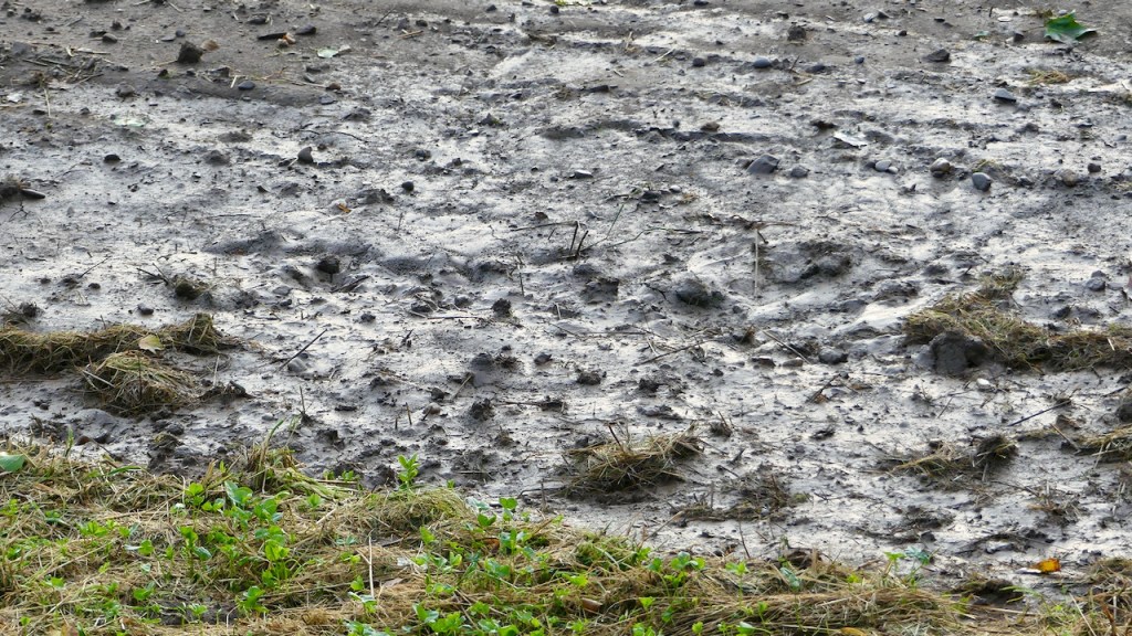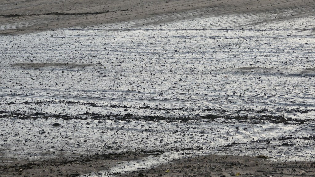 Zwischen Acker und Blühstreifen hatte der Bauer einen kleinen Graben gepflügt, der ist jetzt mit Schlamm gefüllt