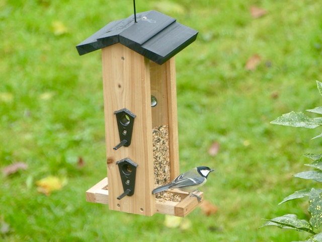 Jetzt ist es eine etwas größere Futtersäule geworden, in der das Futter auch besser vor Regen geschützt ist