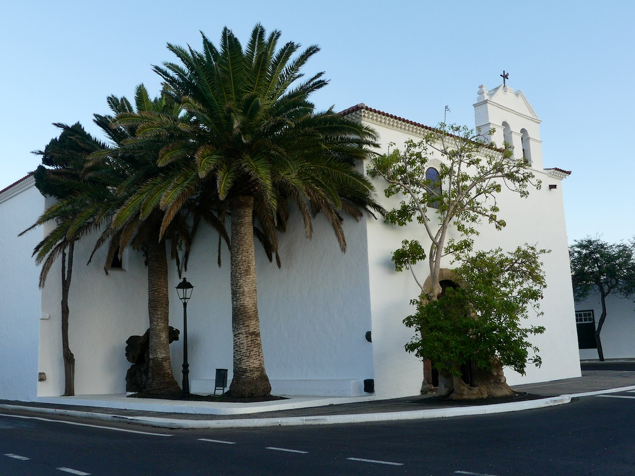 Abends wird das Licht weicher und die Gebäude und Palmen kommen besser zur Geltung. Aber die Fotografin muss sich schon etwas sputen, denn weil Yaiza in einem Talkessel liegt, verschwindet die Sonne auch schnell hinter dem Vulkan.