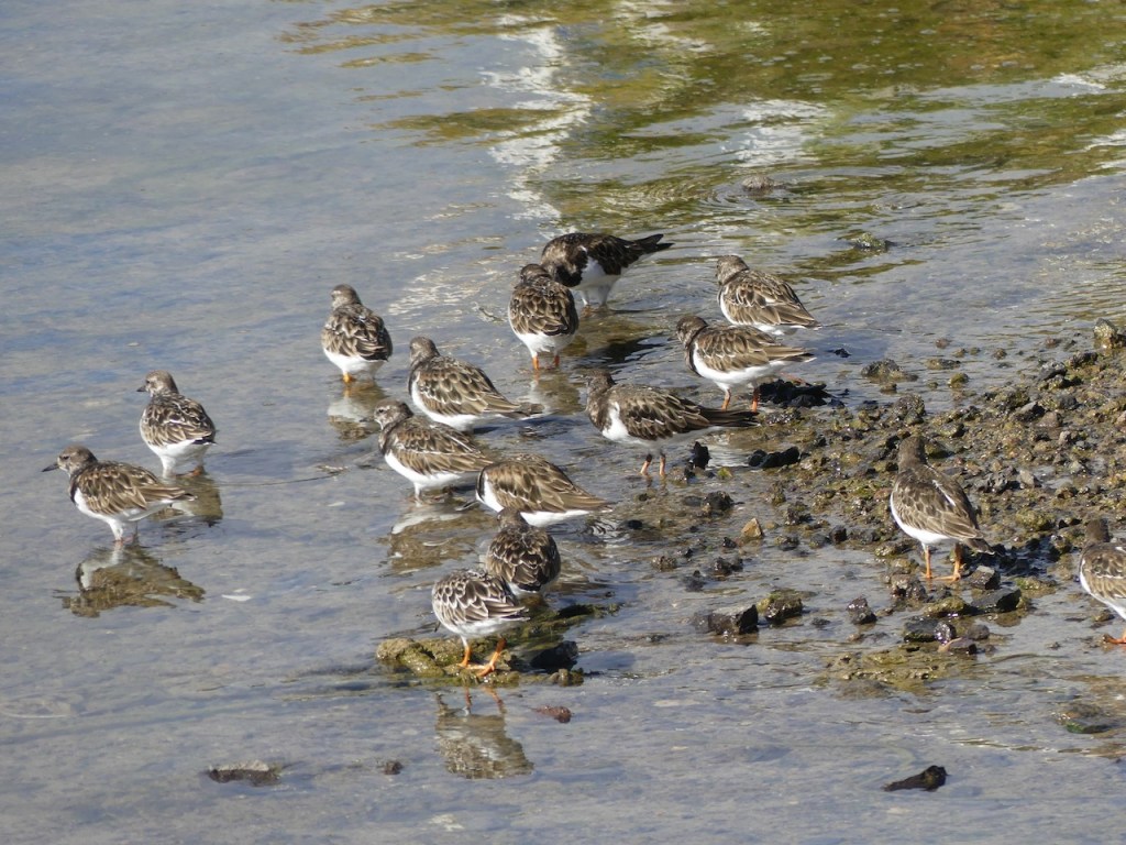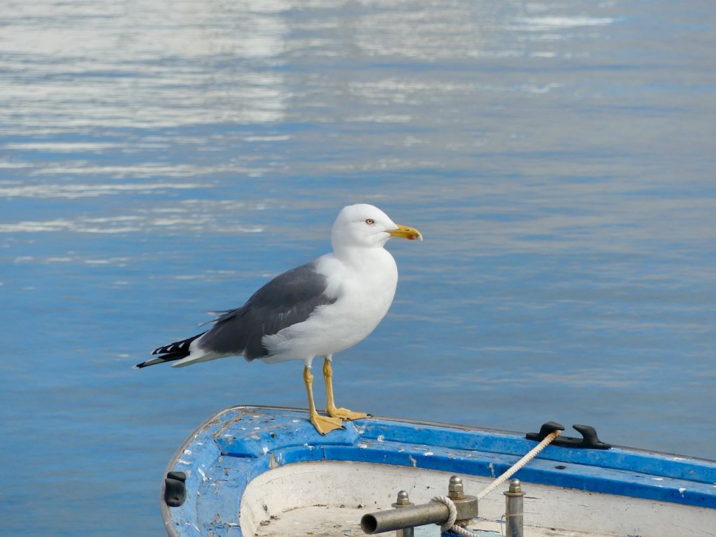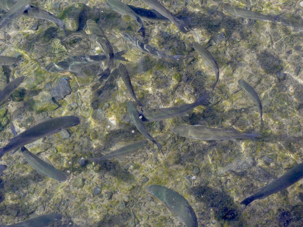 …gibt es auch Vögel: Atlantikmöwe, Graureiher, Steinwälzer und Fische: Meeräschen