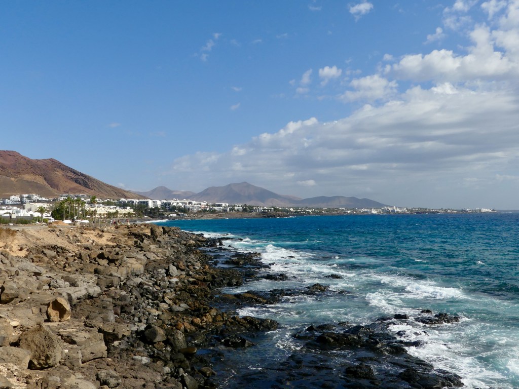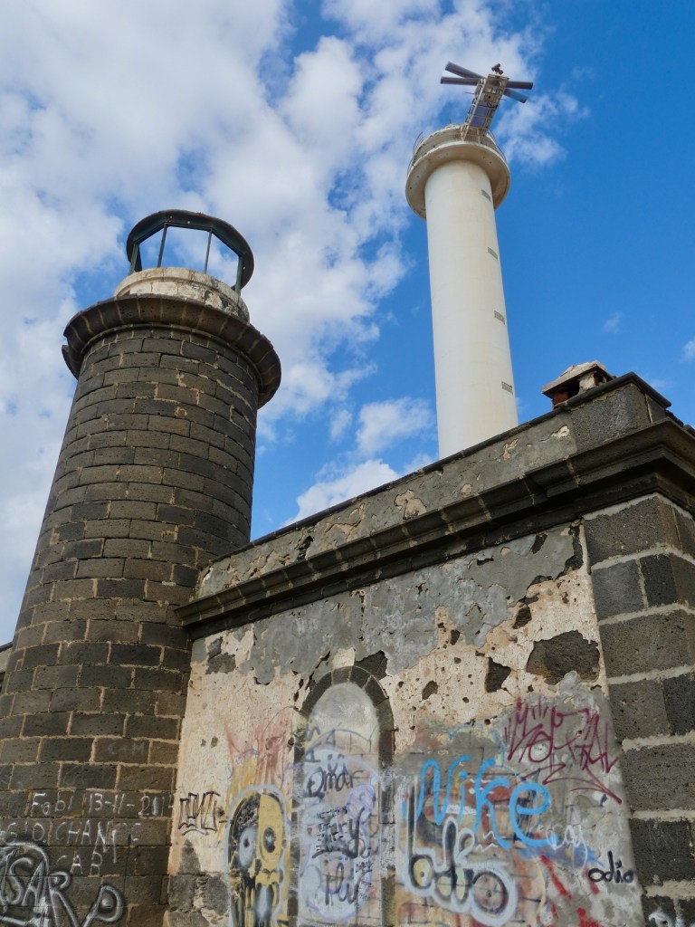 Von der Mole nach rechts wandere ich 5 km Richtung Leuchtturm. Links das tosende Meer, rechts die Hotellandschaften. Eigentlich ist die Promenade ganz schön, also wenn man auf das Meer, die Klippen und Richtung Fuerteventura schaut. Die Hotels sind All-Inclusive-Landschaften für sich selbst. Mit Pool zum Spar und Restaurant und allem was der Mensch so braucht man muss sich da gar nicht raus bewegen. Sie sind derzeit aber ziemlich leer. Was da los ist, wenn da was los ist, will ich lieber nicht wissen.