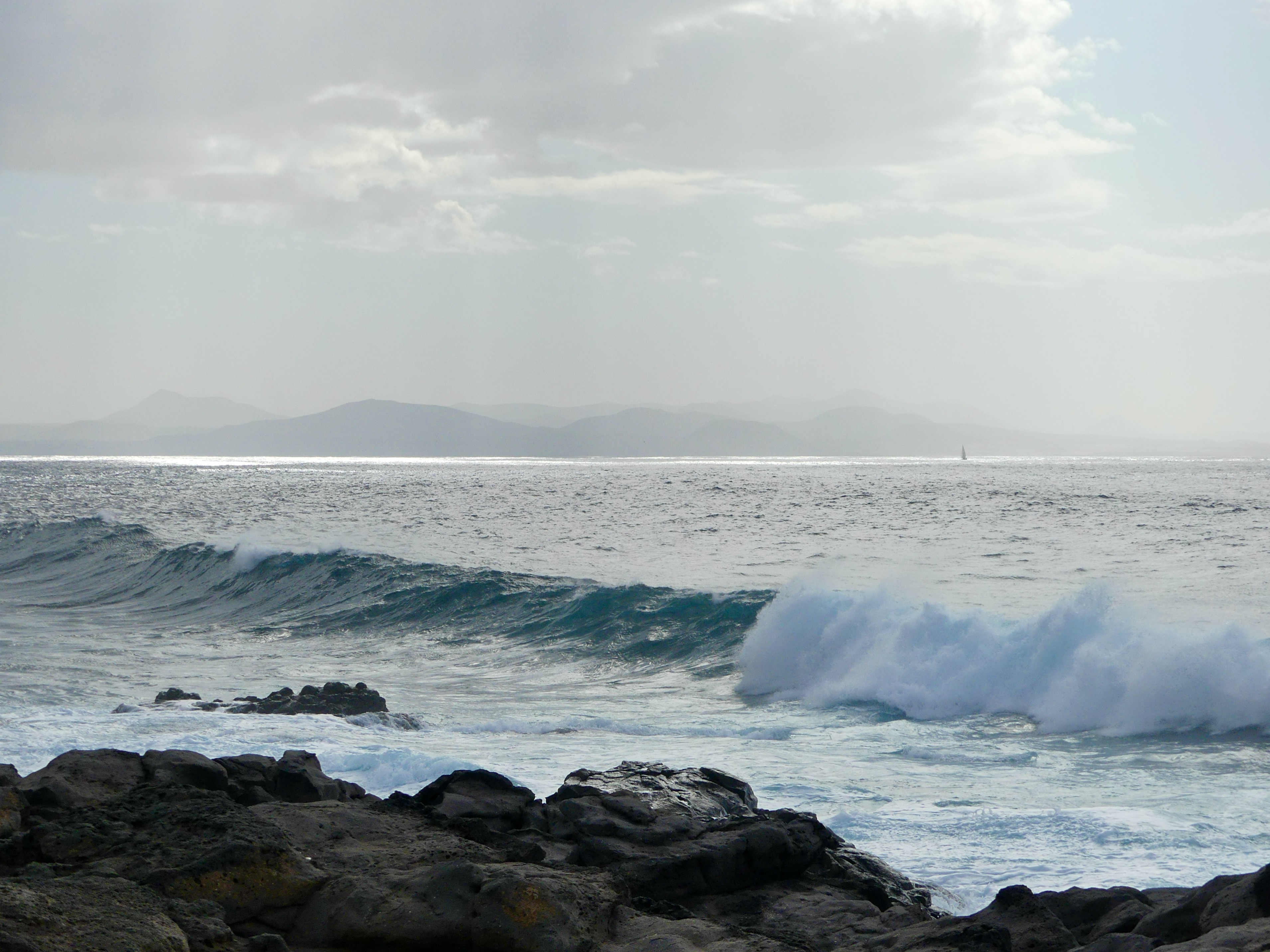 Von der Mole nach rechts wandere ich 5 km Richtung Leuchtturm. Links das tosende Meer, rechts die Hotellandschaften. Eigentlich ist die Promenade ganz schön, also wenn man auf das Meer, die Klippen und Richtung Fuerteventura schaut. Die Hotels sind All-Inclusive-Landschaften für sich selbst. Mit Pool zum Spar und Restaurant und allem was der Mensch so braucht man muss sich da gar nicht raus bewegen. Sie sind derzeit aber ziemlich leer. Was da los ist, wenn da was los ist, will ich lieber nicht wissen.