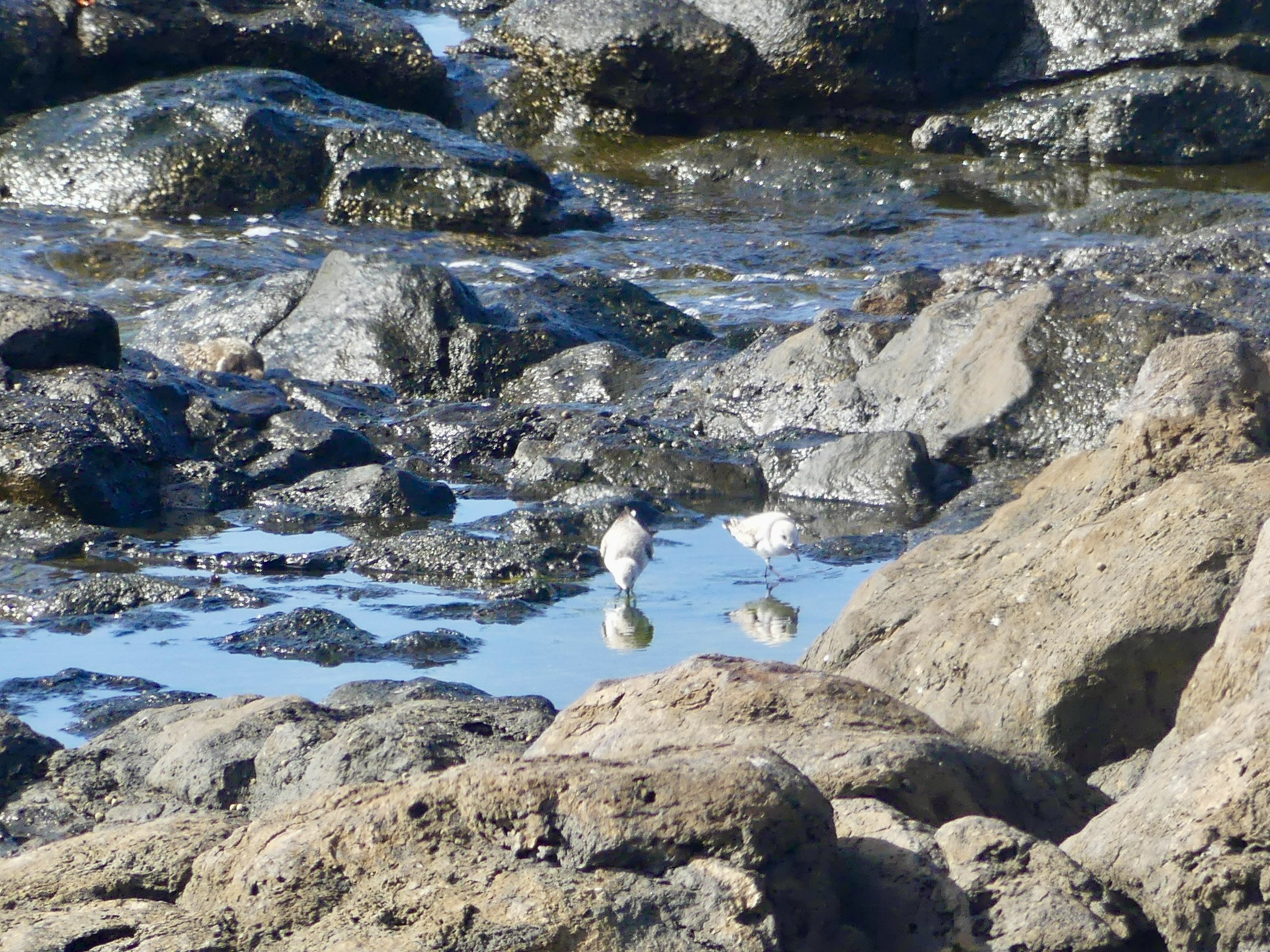 Die Küste ist steinig. Ein paar winzige wenige Badebuchten gibt es, und die etwas größeren sind in Privatbesitz. Aber der Blick auf die Küste lohnt sich und zwischen den Felsen suchen kleine Vögel nach Nahrung. (Limikolen kann ich nicht)
