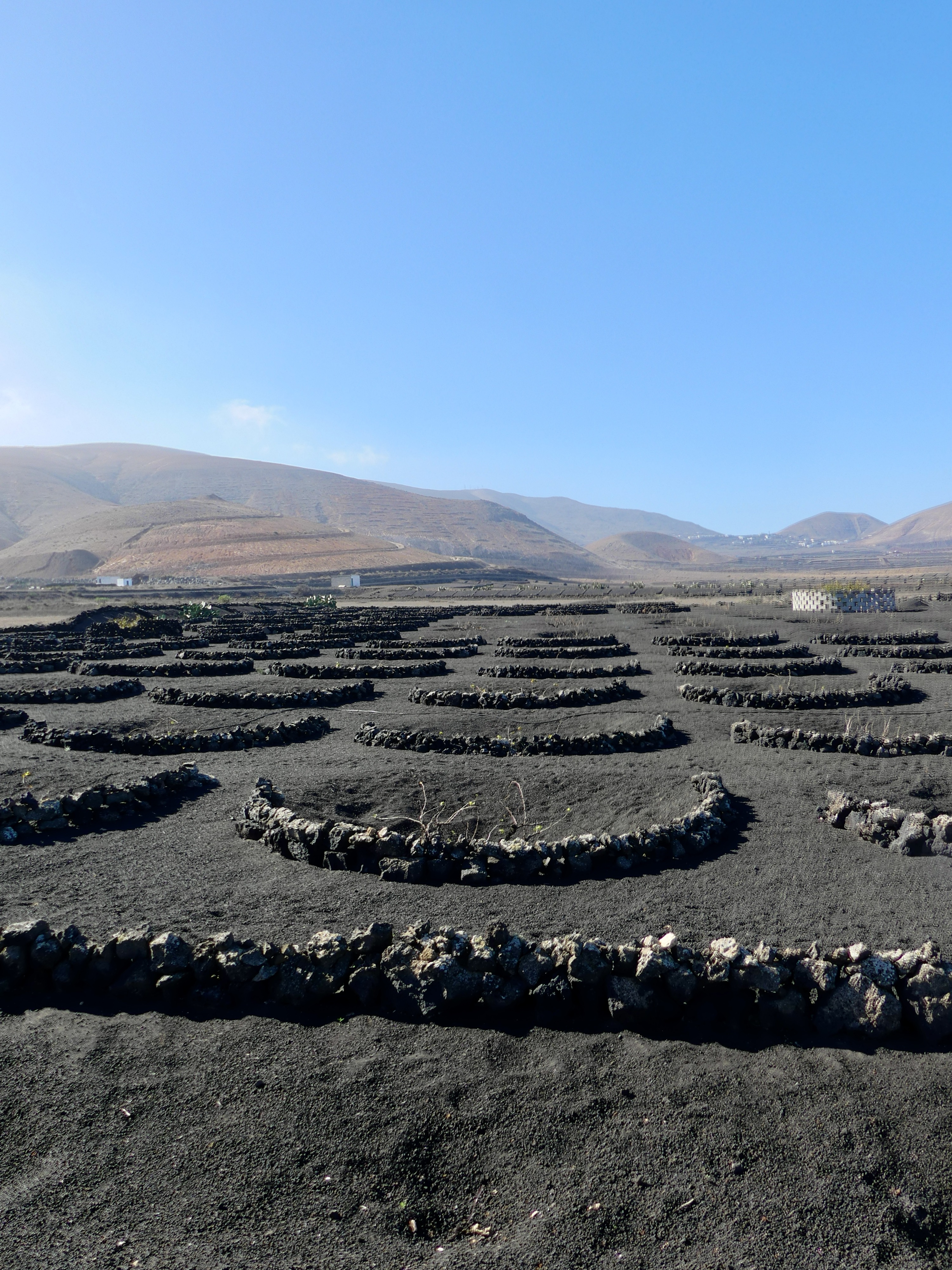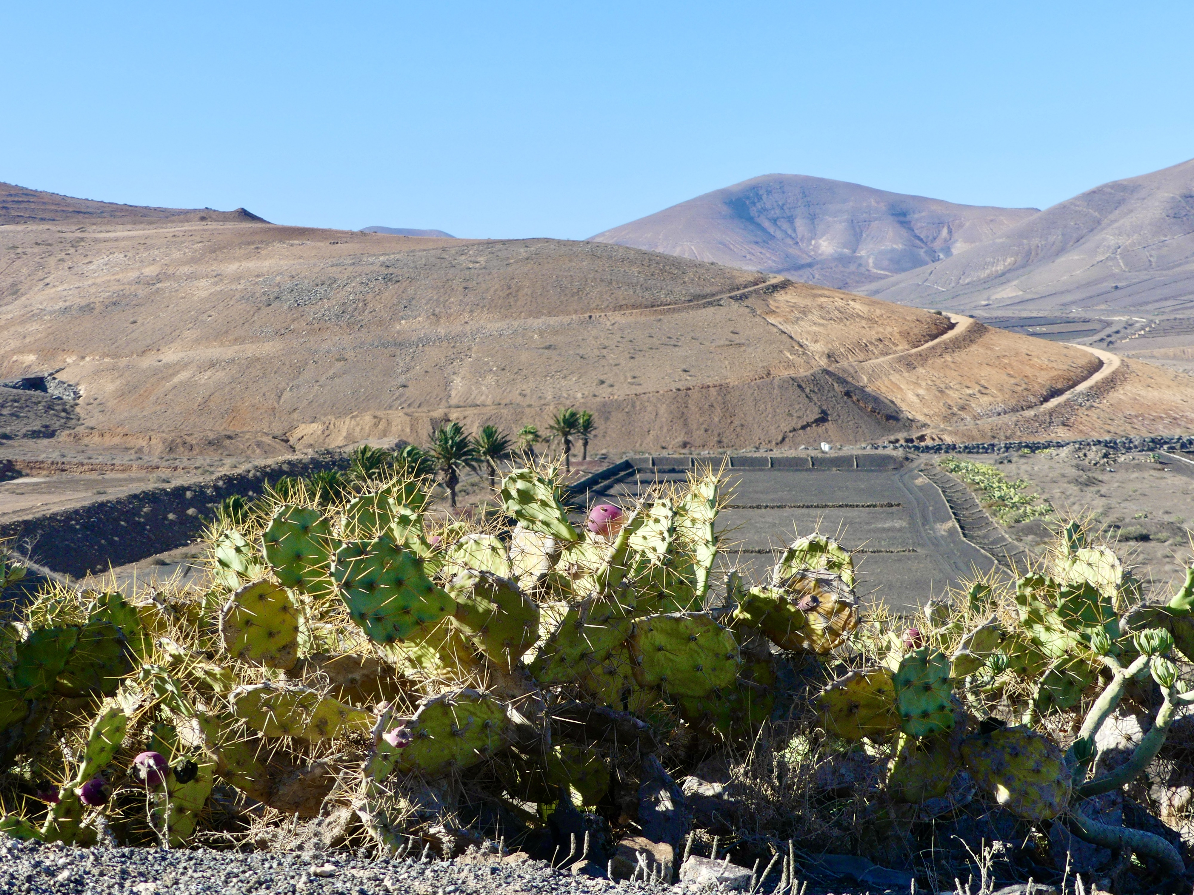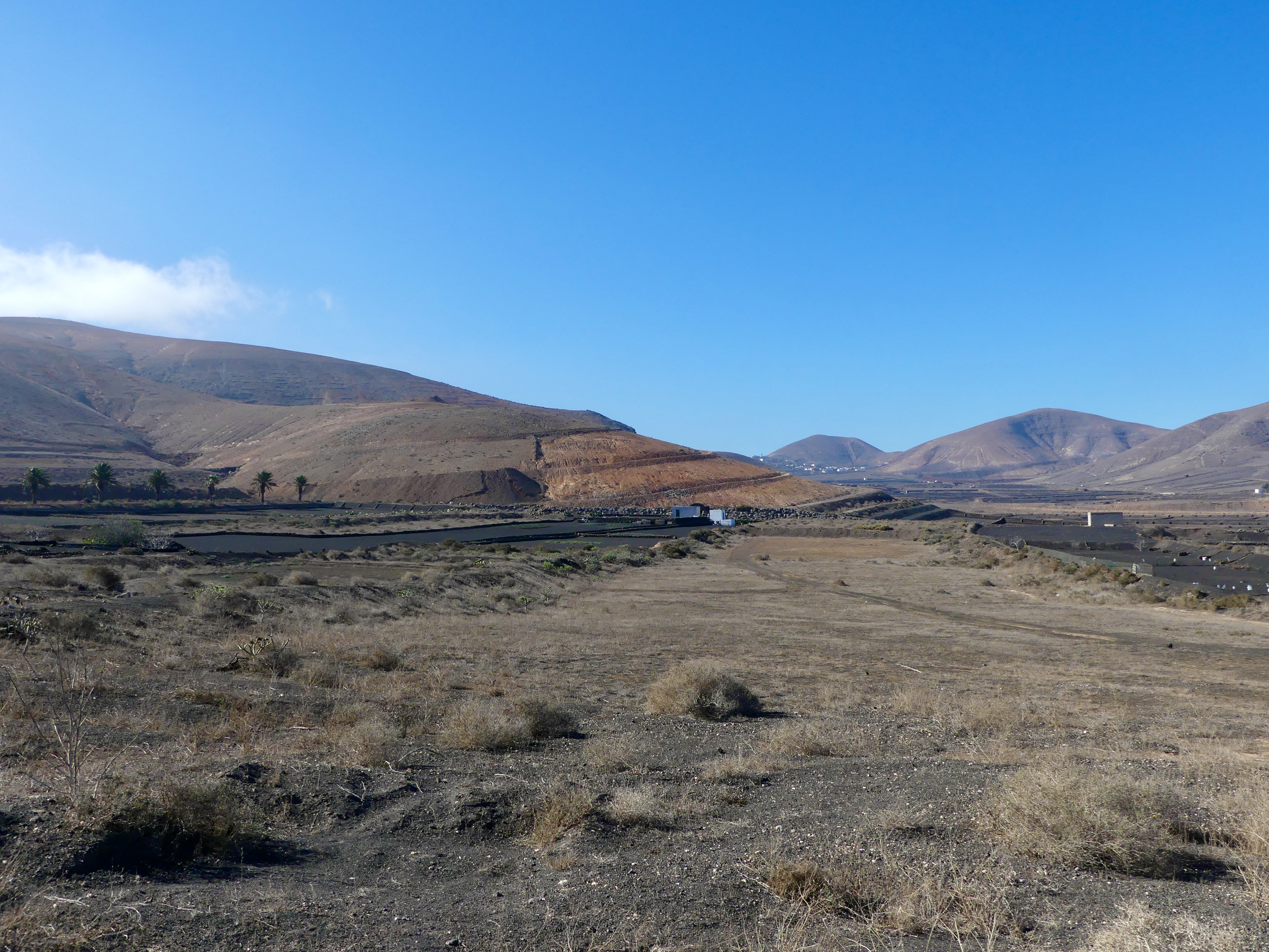 Zuerst noch viel Landwirtschaft hinter Mäuerchen, bis das fruchtbare Land endet, dann durch einen Ausläufer des Lavastroms.