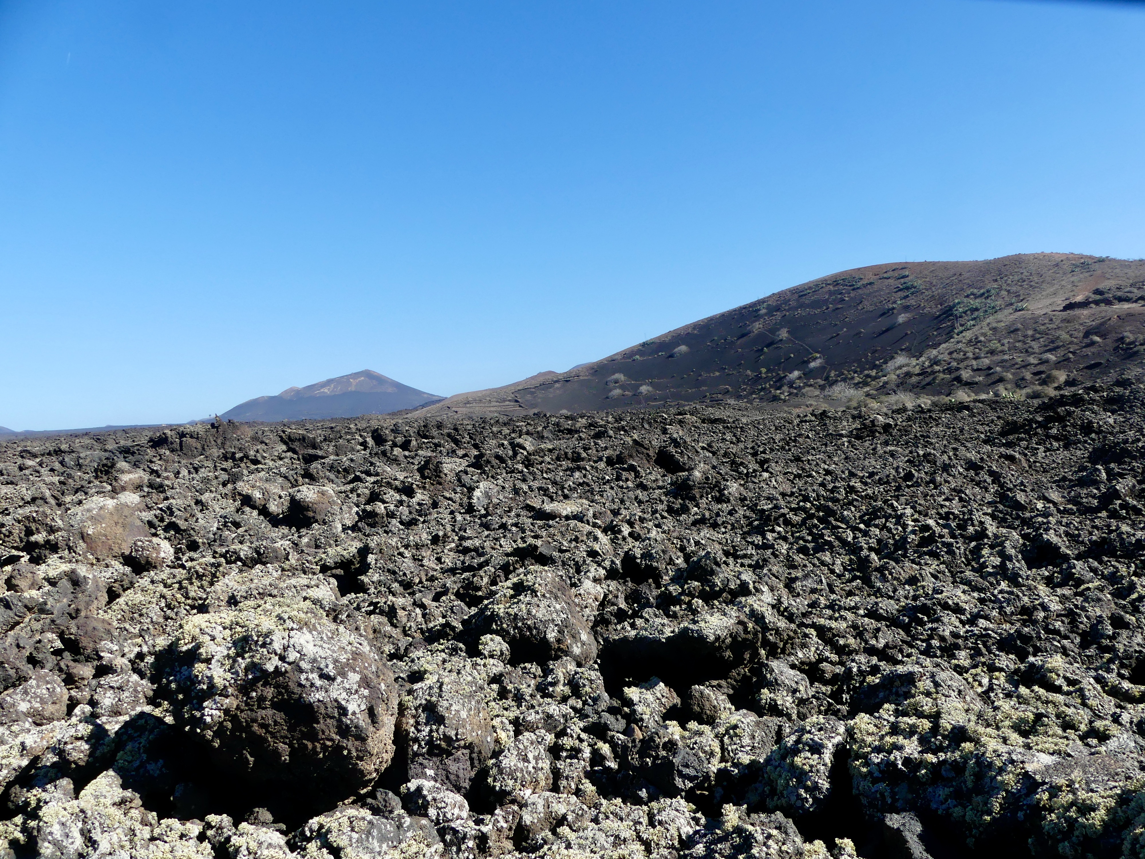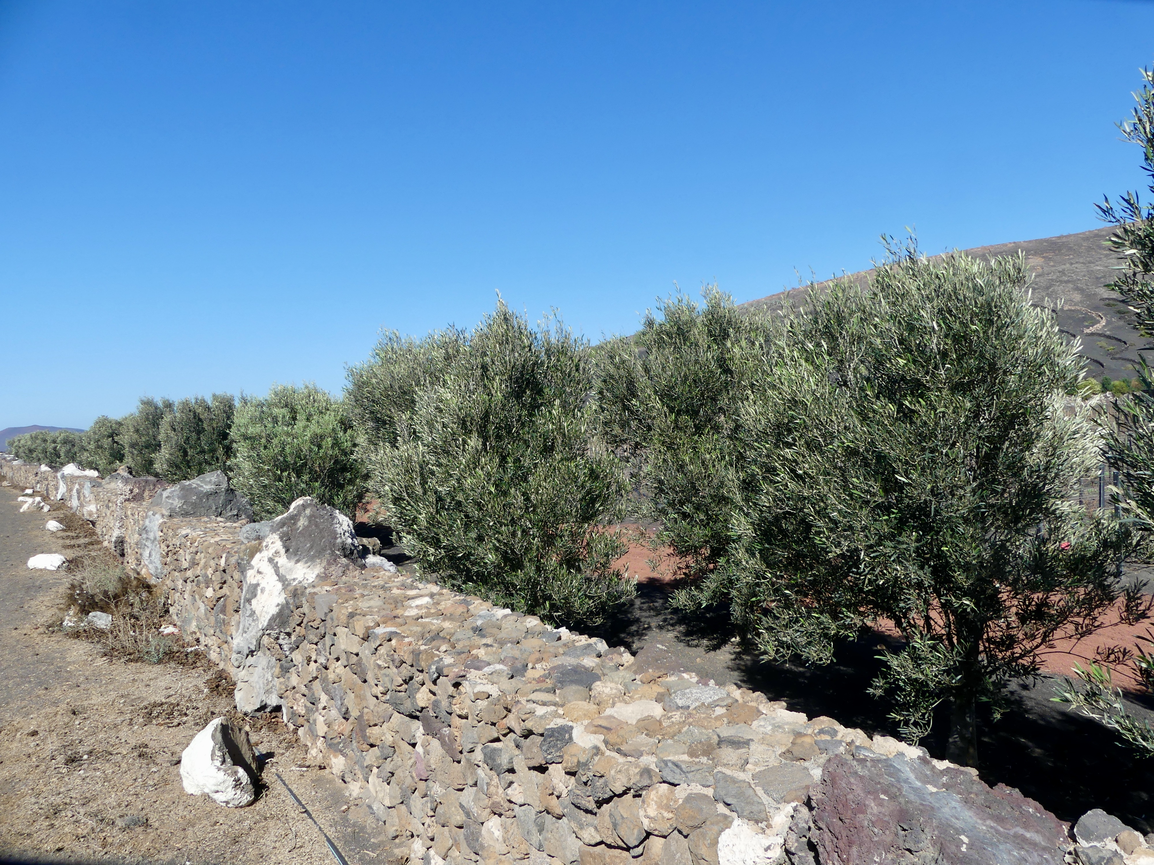 Zuerst noch viel Landwirtschaft hinter Mäuerchen, bis das fruchtbare Land endet, dann durch einen Ausläufer des Lavastroms.