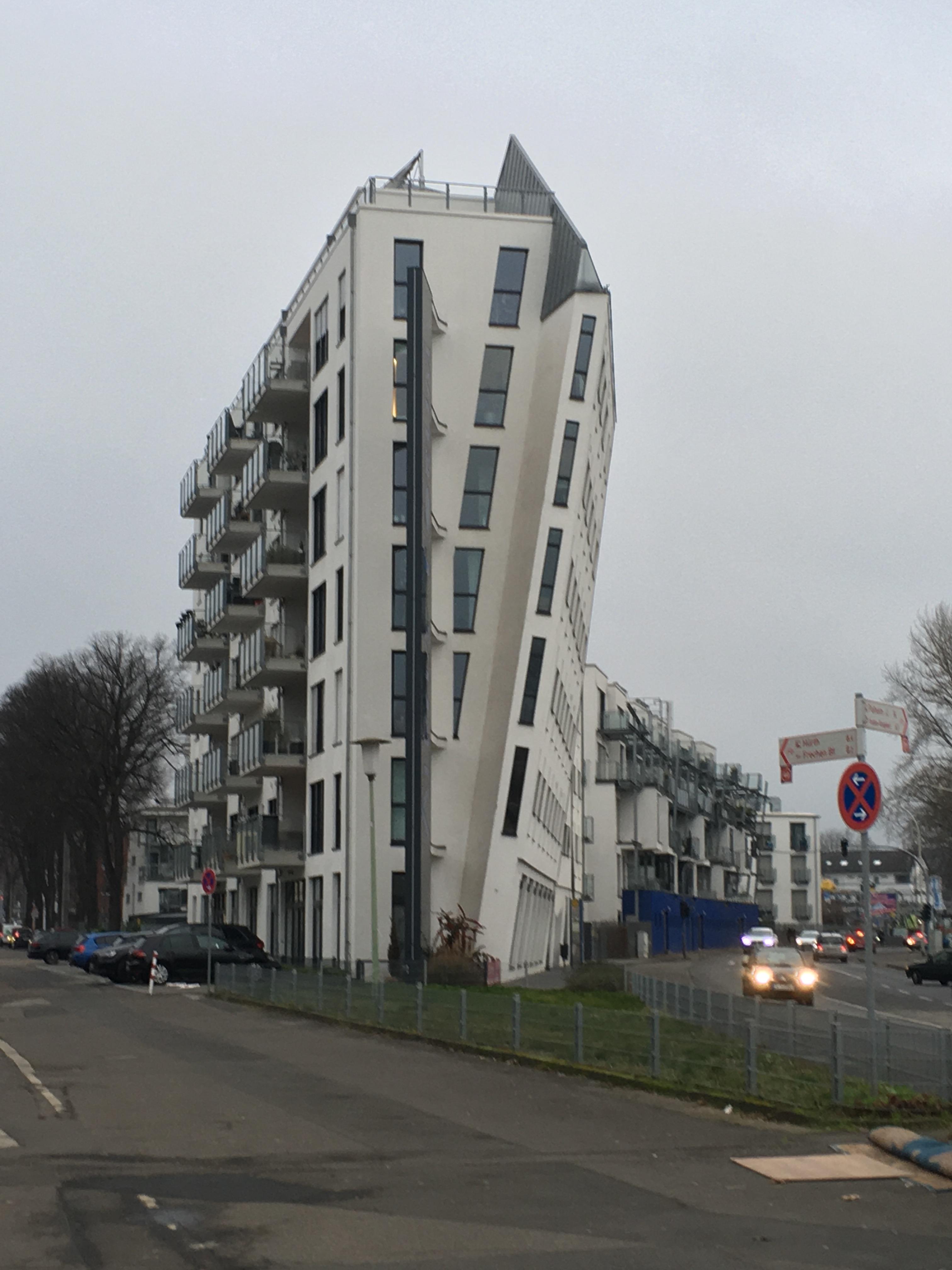 Da es schief ist, ist es nicht stinknormal. Düsseldorf lässt sich so was vergolden. Und wenn das Gelände brach gelegen hätte, bei dem Wohnungsmangel hier, wäre es auch nicht recht gewesen.