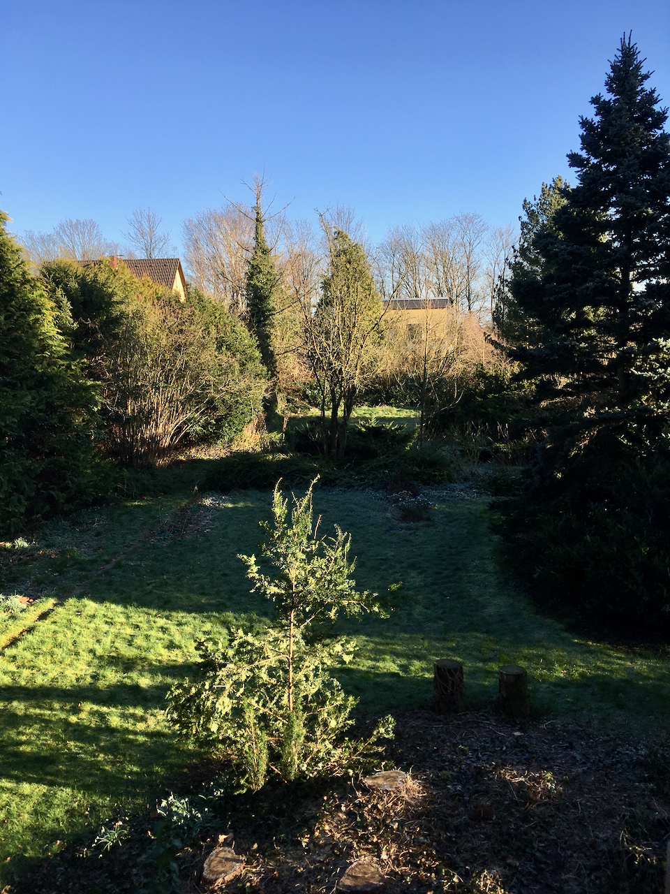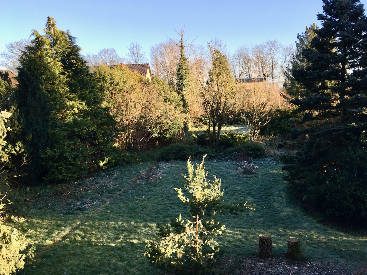 Und um 9.00 sieht man auch die Schneeglöckchen neben der Eibe. Vielleicht sollte ich mal einen Zeitraffer etablieren.