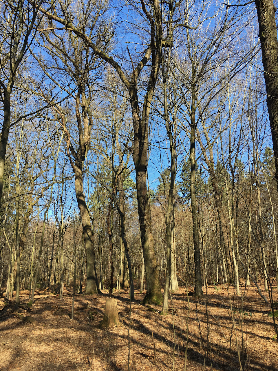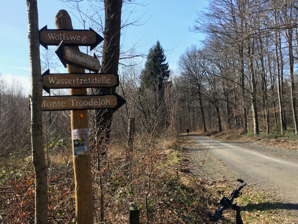 Endlich kein Sturm mehr, sondern klares, sonniges Wetter. Ein Buch wollte noch freigelasssen werden, als Themenrelease. Wolfsspuren wollte ich am Wolfsweg im Königsforst freilassen. Also erstmal mit dem Rad durch die Felder Richtung Königsforst.