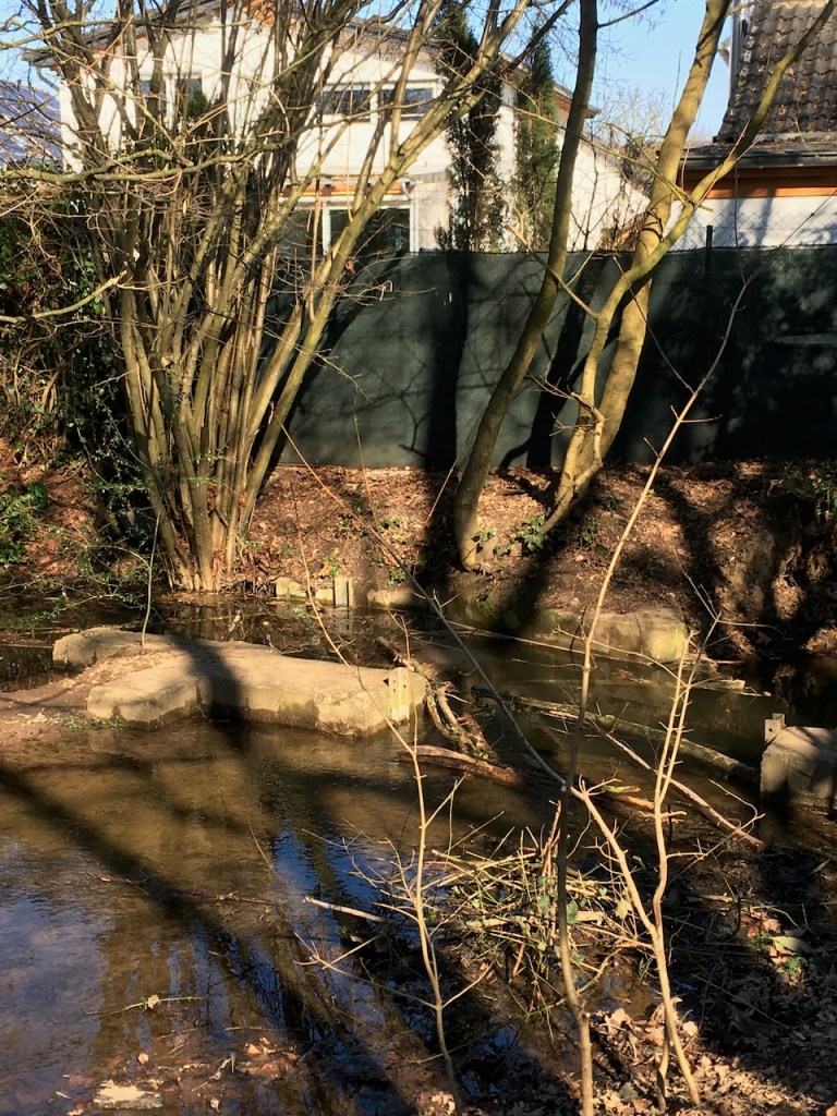 Da bin ich 100 mal dran vorbei gefahren oder gegangen und habe es nicht bemerkt. Nur im Winter habe ich an der Stelle einmal dicke Eisschollen fotografiert. Meistens war da ein trockener Graben.
