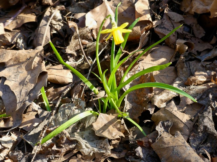 Am 1. März war meteorologischer Frühlingsanfang und seitdem grübele ich darüber, wie es diese Narzissen aus meinem Garten oder Vorgarten in den Straßengraben geschafft haben. Bei Schneeglöckchen weiß ich ja inzwischen, dass die Samen von Ameisen verschleppt werden.