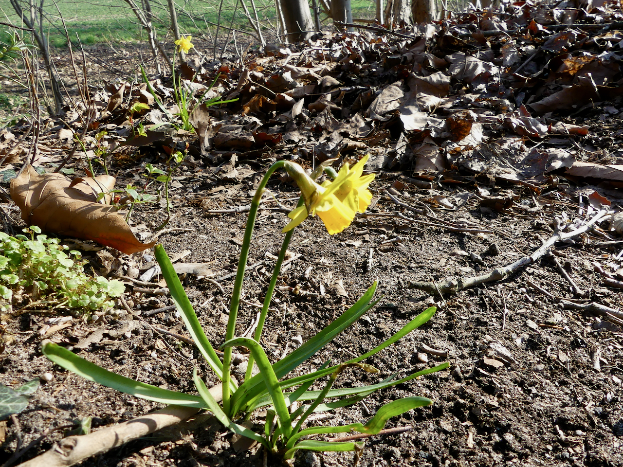 Am 1. März war meteorologischer Frühlingsanfang und seitdem grübele ich darüber, wie es diese Narzissen aus meinem Garten oder Vorgarten in den Straßengraben geschafft haben. Bei Schneeglöckchen weiß ich ja inzwischen, dass die Samen von Ameisen verschleppt werden.