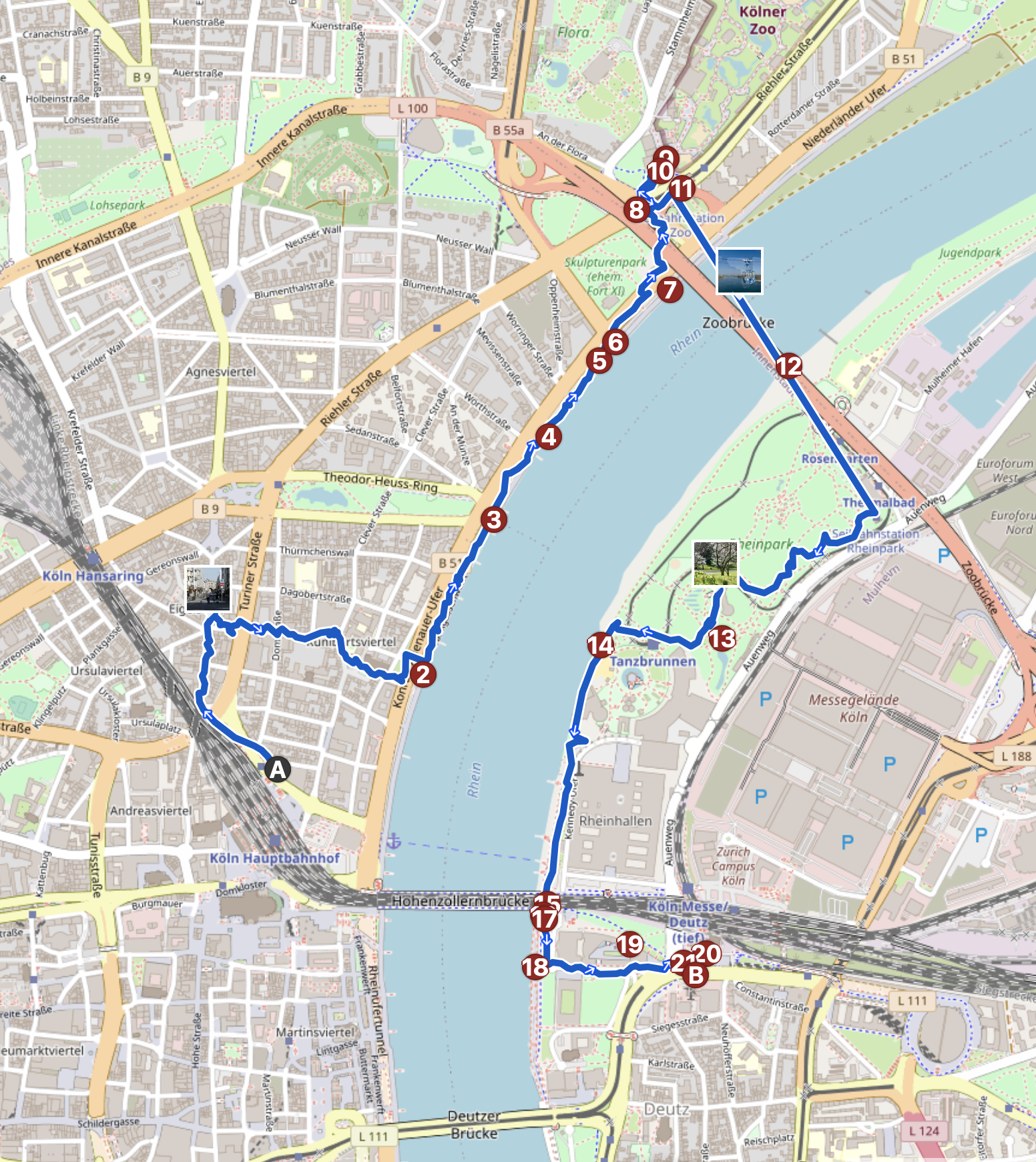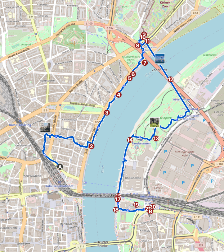 Weiter am Rhein und am Messegelände gibt es noch einiges zu entdecken und ein Eis. Ich ende am Deutzer Bahnhof. Dabei wollte ich eigentlich nur mal eben ein Buch freilassen.