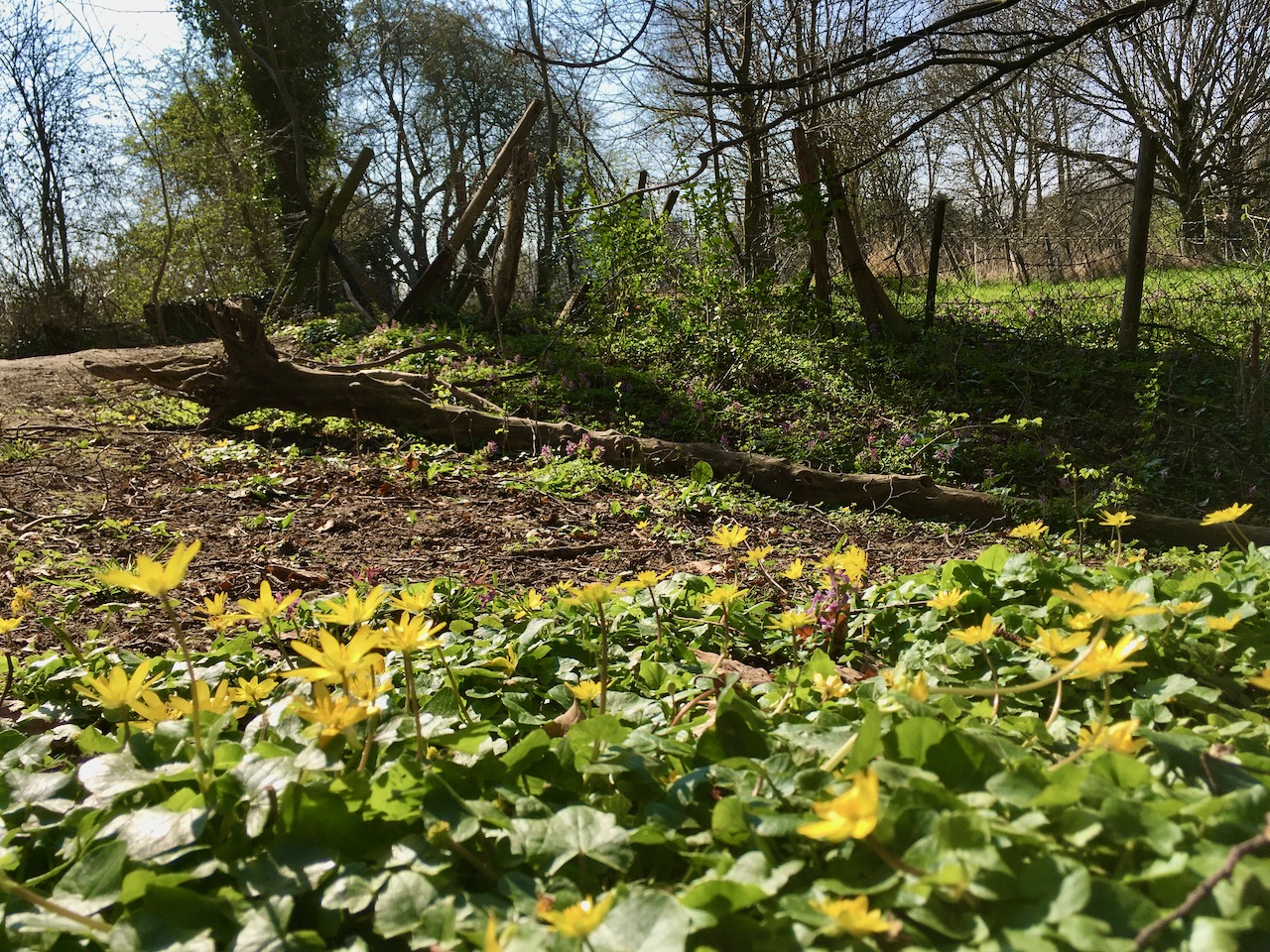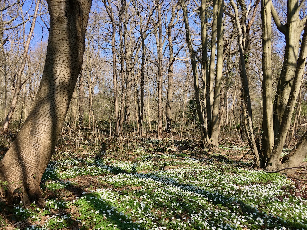 Aber dann sollte ich kurz vor dem Gut Mielenforst links abbiegen. Oha! Also nicht über den Mauspfad. Hier bin ich bei meiner Rückenwind-Tour schon mal entlang gefahren. Und jetzt lande ich in einem Meer aus Buschwindröschen.