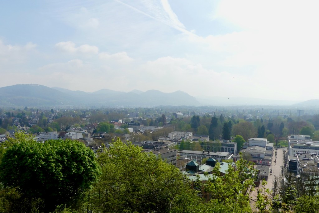 Von dort oben genieße ich zunächst mal die Aussicht. Leider verschwindet das Siebengebirge noch im Dunst.