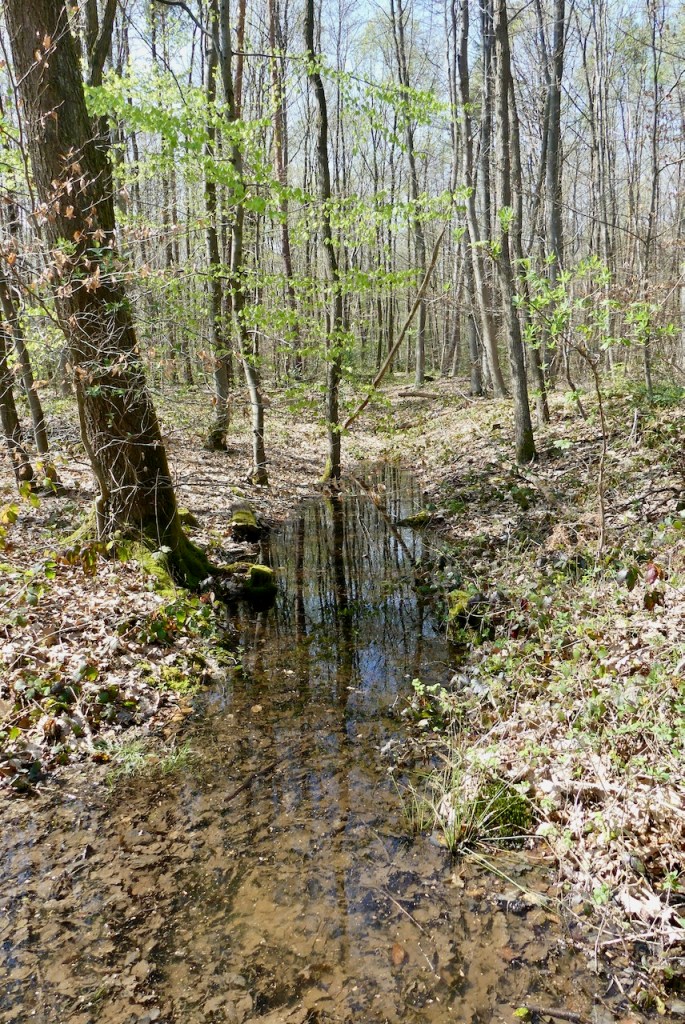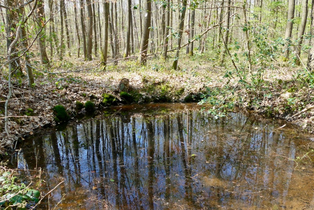 Wer bis jetzt nicht kapiert hat, dass die Art der Nutzung – Wald oder Weizen, Kohl oder Kühe – vom Boden abhängt, lernt es hier. Aus einem Quellsumpf tritt Wasser an die Oberfläche, das weiter oben nicht versickern konnte.