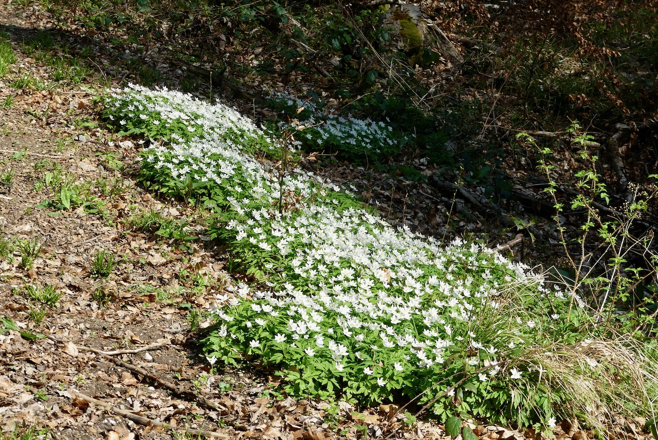 An den steilen Serpentinen riecht es würzig. Knoblauchrauke blüht in Massen. Um die Burg rum war meine Wegweiserin wegen der Kehre völlig durch’n Tüdel. „Rechts, links, scharfrechts, links, erst links, dann rechts, dann geradeaus, links halten“ schallt es im Sekundentakt. Ich sehe es ihr nach, denn bei der Planung war ich auch nicht so sicher, wie das wohl gemeint ist. Der Lehrpfad selbst hat auch keine Wegweisung, sondern nur die recht informativen Schilder.