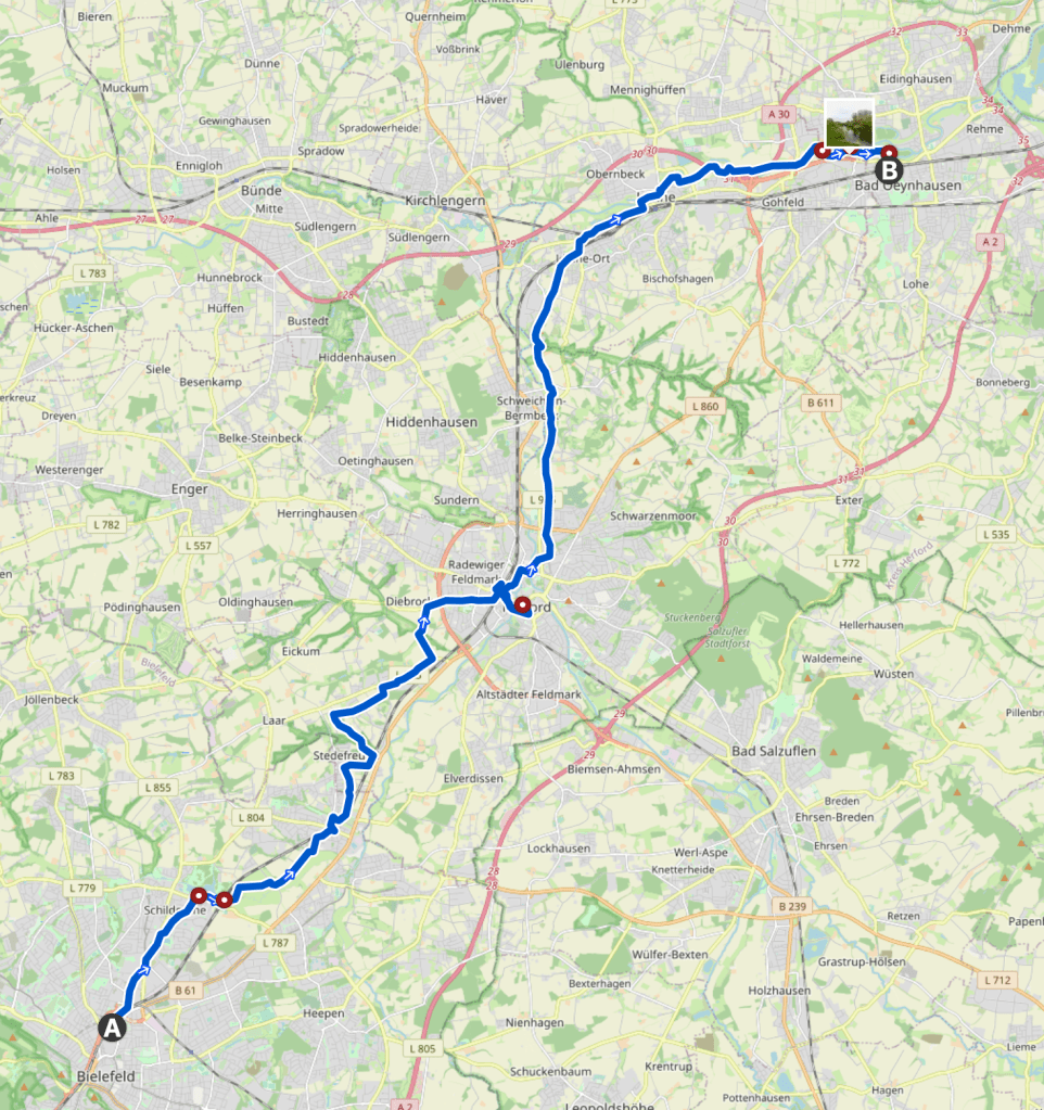 40 km sind es von Bielefeld über Herford nach Bad Oeynhausen. Schaffe ich locker, denke ich, und habe die Rechnung ohne das Wetter und die Radwege-Planer gemacht. Wetter: bewölkt, soll trocken bleiben – von der steifen Brise hat kein Wetterbericht gewarnt.