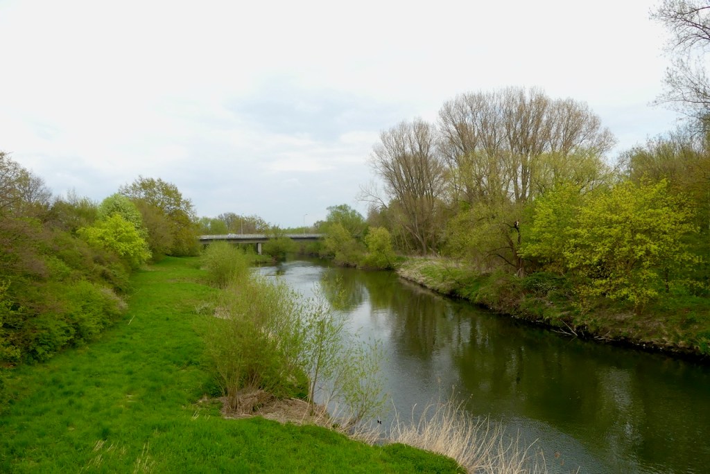 Aus Herford raus bläst der Wind zwar immer noch von vorn, aber der Routenplaner war wohl ein anderer. Er erspart mir den Zickzack-Parcours über die Hügel und führt mich auf dem Werre-Werre-Radweg gleich an der Hauptstraße entlang, bis ich endlich an die Werre abbiegen darf. Die folgende reizvolle Etappe zwischen Löhne und Bad Oeynhausen bin ich schon einmal gewandert.