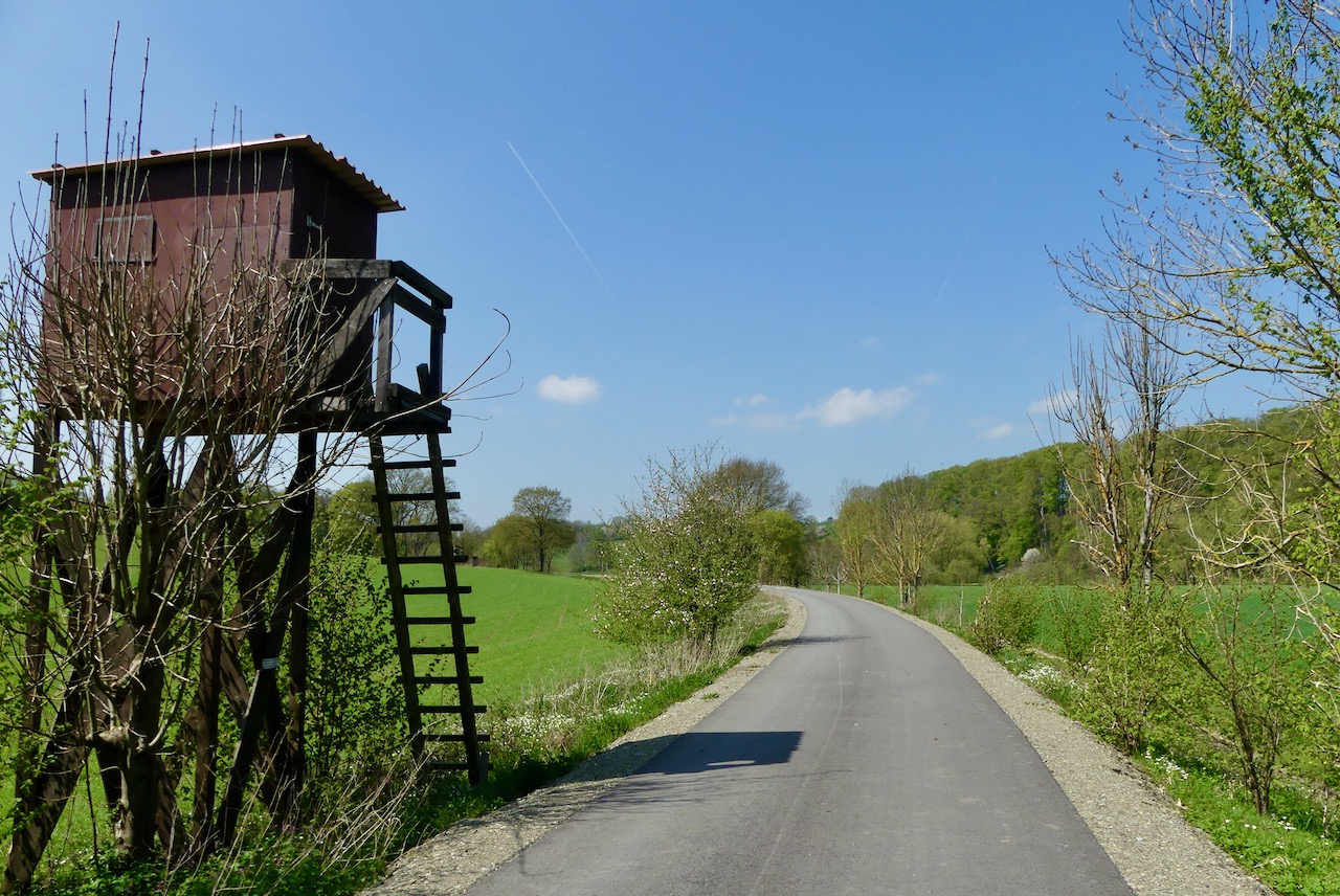 Weiter geht’s Richtung Warburg über die Hügel, die ich komplett verdrängt hatte. So wird der Endspurt doch noch ein wenig an anstrengend. Hier übernachte ich nicht im selben Hotel, denn der Gastwirt meldet sich nicht. Die Alternative liegt ziemlich oben ich muss noch mal klettern. Der Aufstieg hat sich gelohnt. die kleine Pension Famos ist ganz auf Radler ausgerichtet. Es gibt sogar Gepäckablagen, in die man die Radtaschen einhaken kann. und das Frühstück am nächsten Morgen ist das beste der Tour.